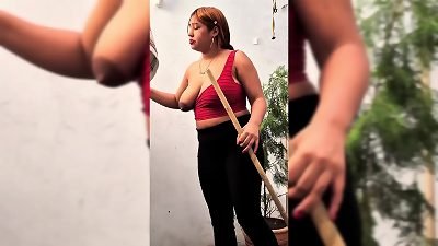 I HIRE A CLEANER AND THE mega-bitch COMES WITH semi-transparent leggings AND A THREAD