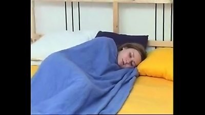 youthful girl is awakened while sleeping by her tweak who pulverizes her with a fat dildo and then tear up her and jizz in her sack