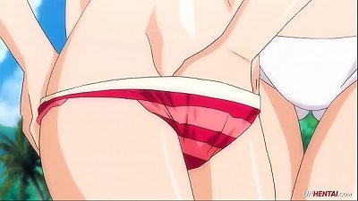 girl-on-girl with a belt cock pounded girlfriend through shorts, doggy-style shake a meaty ass. POV.
